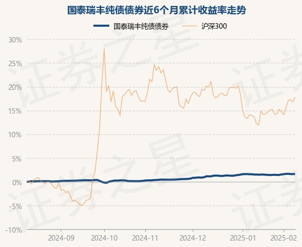 证券之星消息,2月12日,国泰瑞丰纯债债券最新单位净值为1.0105元,累计净值为1.0895元,较前一交易日上涨0.01%。历史数据显示该基金近1个月上涨0.11%,近3个月上涨1.17%,近6个月上涨1.64%,近1年上涨3.36%。该基金近6个月的累计收益率走势如下图: