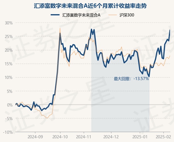证券之星消息,2月12日,汇添富数字未来混合A最新单位净值为0.6677元,累计净值为0.6677元,较前一交易日上涨3.12%。历史数据显示该基金近1个月上涨14.37%,近3个月上涨1.2%,近6个月上涨27.16%,近1年上涨29.32%。该基金近6个月的累计收益率走势如下图: