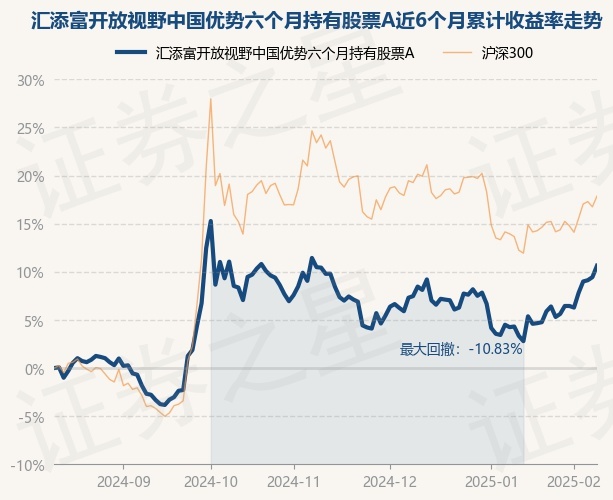 证券之星消息,2月12日,汇添富开放视野中国优势六个月持有股票A最新单位净值为0.6693元,累计净值为0.6693元,较前一交易日上涨1.09%。历史数据显示该基金近1个月上涨7.05%,近3个月上涨0.77%,近6个月上涨10.63%,近1年上涨14.78%。该基金近6个月的累计收益率走势如下图: