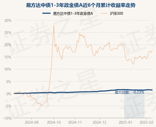 证券之星消息,2月12日,易方达中债1-3年政金债A最新单位净值为1.0039元,累计净值为1.1603元,较前一交易日上涨0.0%。历史数据显示该基金近1个月上涨0.03%,近3个月上涨0.77%,近6个月上涨1.45%,近1年上涨3.33%。该基金近6个月的累计收益率走势如下图: