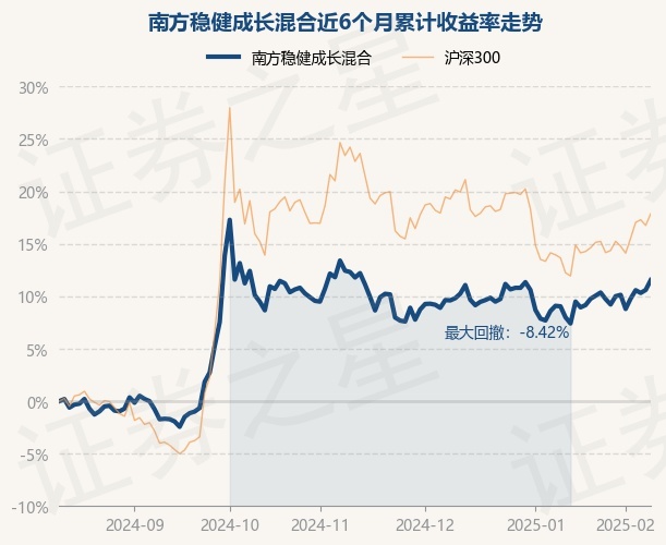 证券之星消息,2月12日,南方稳健成长混合最新单位净值为1.8124元,累计净值为3.8274元,较前一交易日上涨0.85%。历史数据显示该基金近1个月上涨3.28%,近3个月下跌0.23%,近6个月上涨11.53%,近1年上涨9.02%。该基金近6个月的累计收益率走势如下图: