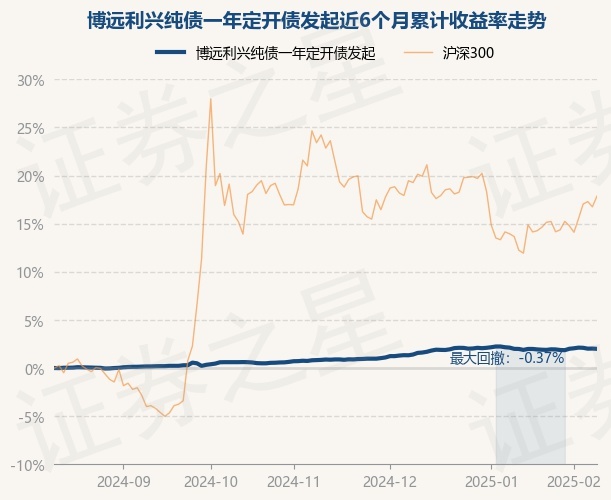 证券之星消息,2月12日,博远利兴纯债一年定开债发起最新单位净值为1.0391元,累计净值为1.0862元,较前一交易日下跌0.03%。历史数据显示该基金近1个月上涨0.01%,近3个月上涨1.1%,近6个月上涨1.99%,近1年上涨4.3%。该基金近6个月的累计收益率走势如下图: