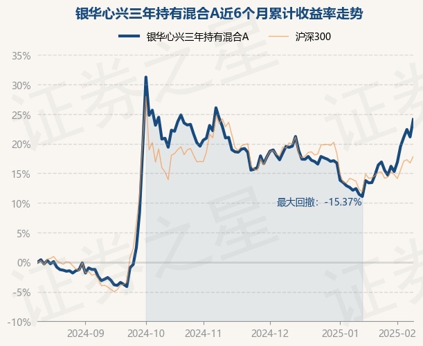 证券之星消息,2月12日,银华心兴三年持有混合A最新单位净值为0.8188元,累计净值为0.8188元,较前一交易日上涨2.43%。历史数据显示该基金近1个月上涨11.34%,近3个月上涨2.57%,近6个月上涨24.08%,近1年上涨21.21%。该基金近6个月的累计收益率走势如下图:
