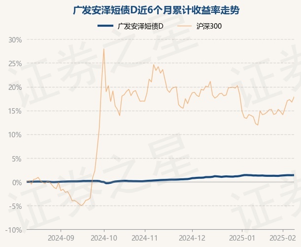 证券之星消息,2月12日,广发安泽短债D最新单位净值为1.076元,累计净值为1.104元,较前一交易日上涨0.02%。历史数据显示该基金近1个月上涨0.07%,近3个月上涨1.04%,近6个月上涨1.4%,近1年上涨3.42%。该基金近6个月的累计收益率走势如下图: