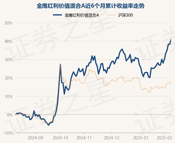 证券之星消息,2月12日,金鹰红利价值混合A最新单位净值为2.2143元,累计净值为4.0268元,较前一交易日上涨1.81%。历史数据显示该基金近1个月上涨16.89%,近3个月上涨8.6%,近6个月上涨40.67%,近1年上涨46.19%。该基金近6个月的累计收益率走势如下图: