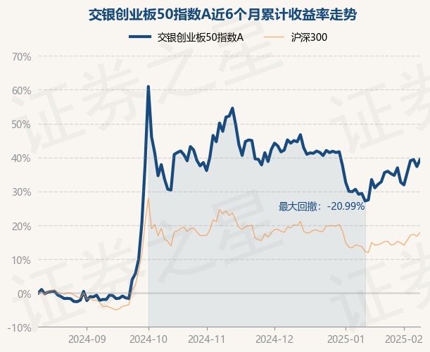 证券之星消息,2月12日,交银创业板50指数A最新单位净值为1.3737元,累计净值为1.5107元,较前一交易日上涨1.54%。历史数据显示该基金近1个月上涨9.64%,近3个月下跌8.37%,近6个月上涨39.25%,近1年上涨32.31%。该基金近6个月的累计收益率走势如下图: