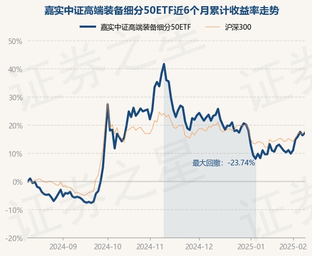 证券之星消息,2月12日,嘉实中证高端装备细分50ETF最新单位净值为0.7675元,累计净值为0.7675元,较前一交易日上涨0.71%。历史数据显示该基金近1个月上涨6.89%,近3个月下跌13.8%,近6个月上涨17.18%,近1年上涨19.03%。该基金近6个月的累计收益率走势如下图: