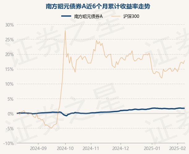 证券之星消息,2月12日,南方昭元债券A最新单位净值为1.1031元,累计净值为1.1701元,较前一交易日上涨0.0%。历史数据显示该基金近1个月上涨0.09%,近3个月上涨1.31%,近6个月上涨1.72%,近1年上涨4.55%。该基金近6个月的累计收益率走势如下图:
