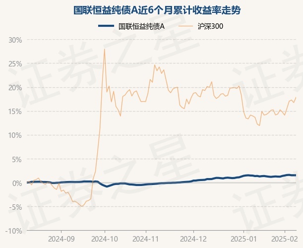 证券之星消息,2月12日,国联恒益纯债A最新单位净值为1.1029元,累计净值为1.1379元,较前一交易日上涨0.0%。历史数据显示该基金近1个月上涨0.15%,近3个月上涨1.66%,近6个月上涨1.53%,近1年上涨4.47%。该基金近6个月的累计收益率走势如下图: