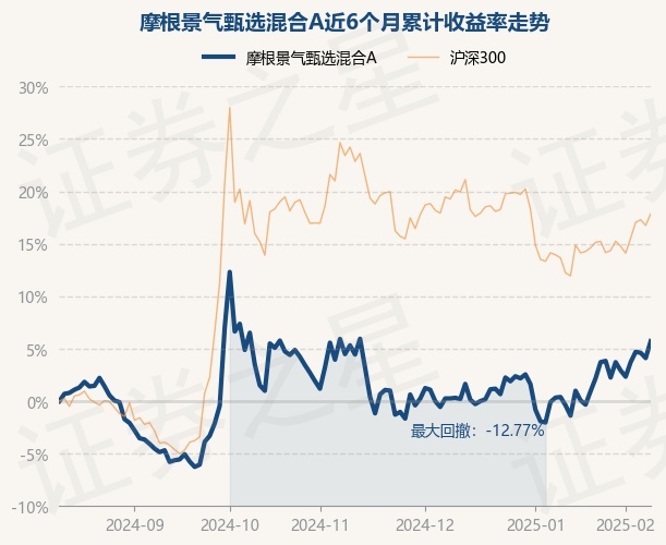 证券之星消息,2月12日,摩根景气甄选混合A最新单位净值为0.5349元,累计净值为0.5349元,较前一交易日上涨1.54%。历史数据显示该基金近1个月上涨6.13%,近3个月上涨1.21%,近6个月上涨5.71%,近1年上涨1.25%。该基金近6个月的累计收益率走势如下图: