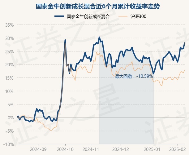 证券之星消息,2月12日,国泰金牛创新成长混合最新单位净值为0.863元,累计净值为3.0元,较前一交易日上涨1.65%。历史数据显示该基金近1个月上涨7.74%,近3个月下跌0.35%,近6个月上涨28.04%,近1年上涨23.64%。该基金近6个月的累计收益率走势如下图: