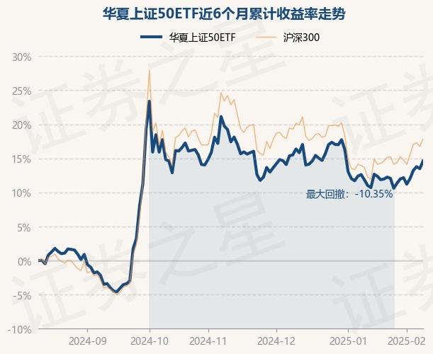 证券之星消息,2月12日,华夏上证50ETF最新单位净值为2.6991元,累计净值为4.0441元,较前一交易日上涨0.98%。历史数据显示该基金近1个月上涨3.24%,近3个月下跌2.41%,近6个月上涨14.59%,近1年上涨15.33%。该基金近6个月的累计收益率走势如下图: