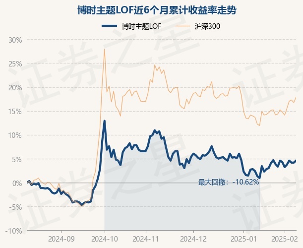 证券之星消息,2月12日,博时主题LOF最新单位净值为1.003元,累计净值为5.698元,较前一交易日上涨0.4%。历史数据显示该基金近1个月上涨3.19%,近3个月下跌4.2%,近6个月上涨4.59%,近1年上涨7.5%。该基金近6个月的累计收益率走势如下图: