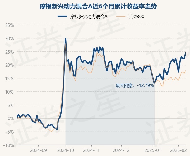 证券之星消息,2月12日,摩根新兴动力混合A最新单位净值为5.1806元,累计净值为5.1806元,较前一交易日上涨1.61%。历史数据显示该基金近1个月上涨7.99%,近3个月下跌0.94%,近6个月上涨24.39%,近1年上涨27.0%。该基金近6个月的累计收益率走势如下图: