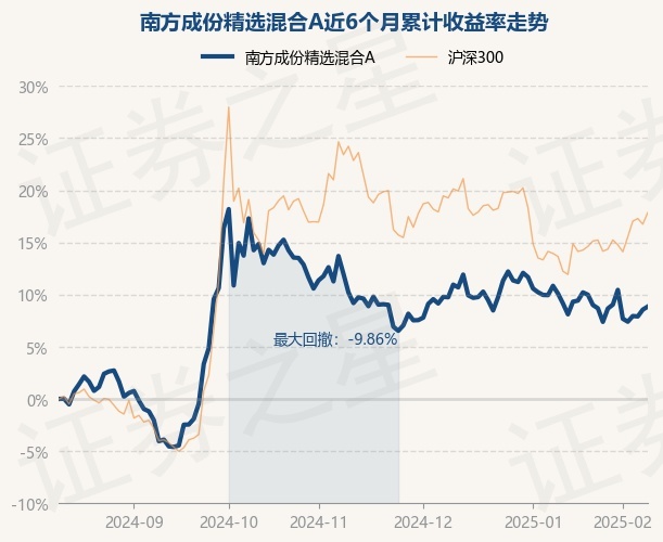 证券之星消息,2月12日,南方成份精选混合A最新单位净值为0.5864元,累计净值为1.979元,较前一交易日上涨0.27%。历史数据显示该基金近1个月下跌0.27%,近3个月下跌0.31%,近6个月上涨8.85%,近1年上涨9.65%。该基金近6个月的累计收益率走势如下图: