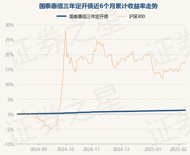 证券之星消息,2月12日,国泰惠信三年定开债最新单位净值为1.0059元,累计净值为1.1418元,较前一交易日上涨0.01%。历史数据显示该基金近1个月上涨0.18%,近3个月上涨0.54%,近6个月上涨1.31%,近1年上涨2.46%。该基金近6个月的累计收益率走势如下图: