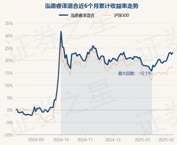 证券之星消息,2月12日,泓德睿泽混合最新单位净值为1.1201元,累计净值为1.1201元,较前一交易日上涨0.67%。历史数据显示该基金近1个月上涨5.97%,近3个月下跌1.25%,近6个月上涨23.2%,近1年上涨26.45%。该基金近6个月的累计收益率走势如下图: