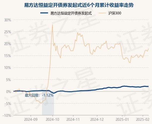 证券之星消息,2月12日,易方达恒益定开债券发起式最新单位净值为1.029元,累计净值为1.309元,较前一交易日下跌0.01%。历史数据显示该基金近1个月上涨0.05%,近3个月上涨1.78%,近6个月上涨2.01%,近1年上涨4.66%。该基金近6个月的累计收益率走势如下图: