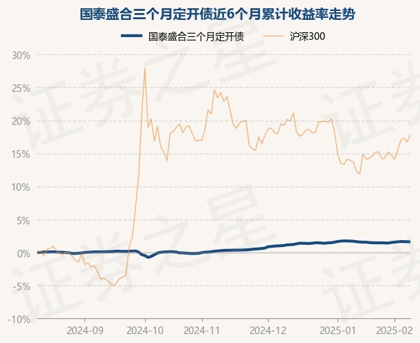 国泰盛合三个月定开债为债券型-长债基金,根据最新一期基金季报显示,该基金资产配置:无股票类资产,债券占净值比125.67%,现金占净值比1.92%。