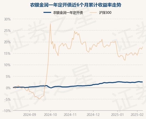 证券之星消息,2月12日,农银金润一年定开债最新单位净值为1.0436元,累计净值为1.1676元,较前一交易日下跌0.01%。历史数据显示该基金近1个月上涨0.11%,近3个月上涨1.64%,近6个月上涨2.46%,近1年上涨4.95%。该基金近6个月的累计收益率走势如下图:
