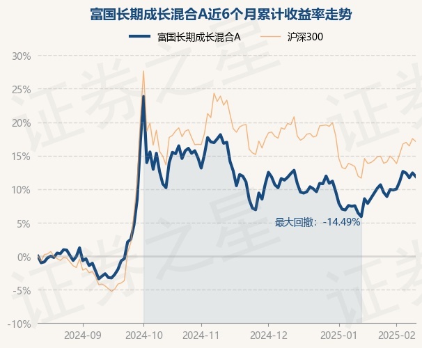 证券之星消息,2月13日,富国长期成长混合A最新单位净值为0.7464元,累计净值为0.7464元,较前一交易日下跌0.48%。历史数据显示该基金近1个月上涨5.65%,近3个月下跌4.37%,近6个月上涨11.89%,近1年上涨18.89%。该基金近6个月的累计收益率走势如下图: