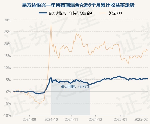 证券之星消息,2月13日,易方达悦兴一年持有期混合A最新单位净值为1.0378元,累计净值为1.0378元,较前一交易日上涨0.11%。历史数据显示该基金近1个月上涨0.71%,近3个月上涨1.0%,近6个月上涨5.42%,近1年上涨7.71%。该基金近6个月的累计收益率走势如下图:
