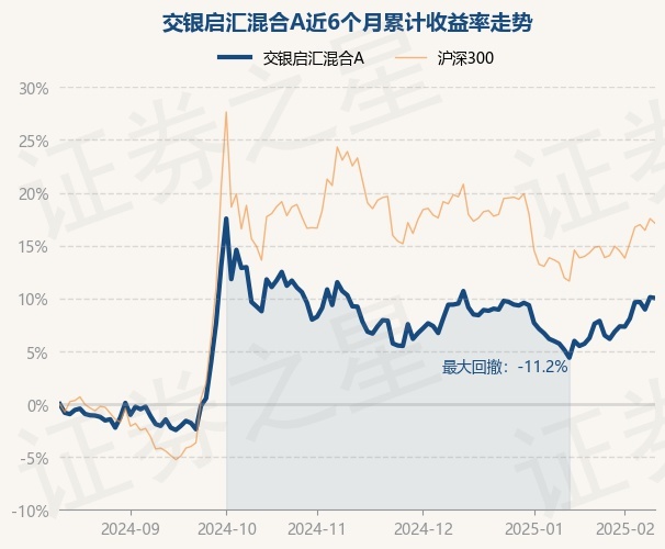 证券之星消息,2月13日,交银启汇混合A最新单位净值为0.7899元,累计净值为0.7899元,较前一交易日下跌0.08%。历史数据显示该基金近1个月上涨5.4%,近3个月上涨0.74%,近6个月上涨10.03%,近1年上涨1.91%。该基金近6个月的累计收益率走势如下图: