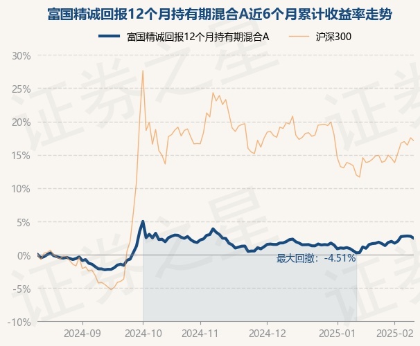 证券之星消息,2月13日,富国精诚回报12个月持有期混合A最新单位净值为1.02元,累计净值为1.02元,较前一交易日下跌0.28%。历史数据显示该基金近1个月上涨2.15%,近3个月上涨0.03%,近6个月上涨2.47%,近1年上涨4.18%。该基金近6个月的累计收益率走势如下图: