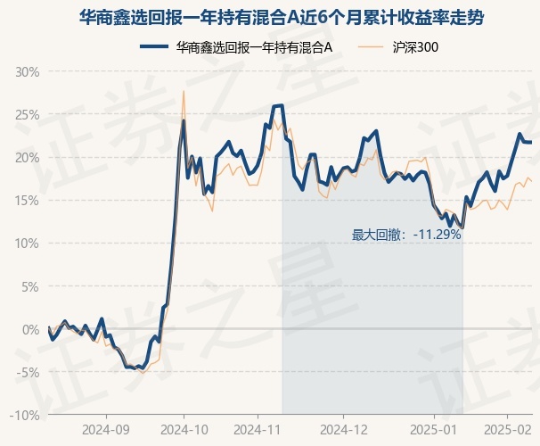 证券之星消息,2月13日,华商鑫选回报一年持有混合A最新单位净值为1.2232元,累计净值为1.2232元,较前一交易日上涨0.0%。历史数据显示该基金近1个月上涨7.61%,近3个月下跌1.23%,近6个月上涨20.23%,近1年上涨26.95%。该基金近6个月的累计收益率走势如下图: