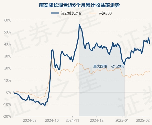 证券之星消息,2月13日,诺安成长混合最新单位净值为1.463元,累计净值为1.908元,较前一交易日下跌3.05%。历史数据显示该基金近1个月上涨9.34%,近3个月下跌7.46%,近6个月上涨40.54%,近1年上涨41.08%。该基金近6个月的累计收益率走势如下图: