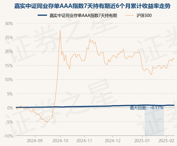 证券之星消息,2月13日,嘉实中证同业存单AAA指数7天持有期最新单位净值为1.059元,累计净值为1.059元,较前一交易日下跌0.01%。历史数据显示该基金近1个月下跌0.02%,近3个月上涨0.34%,近6个月上涨0.76%,近1年上涨1.85%。该基金近6个月的累计收益率走势如下图: