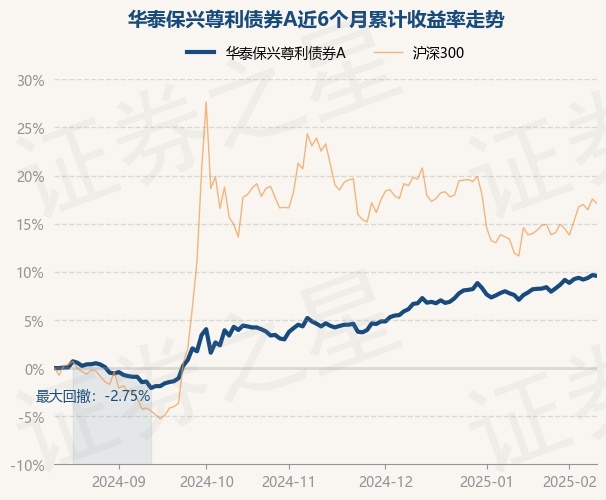证券之星消息,2月13日,华泰保兴尊利债券A最新单位净值为1.2394元,累计净值为1.4639元,较前一交易日下跌0.08%。历史数据显示该基金近1个月上涨2.32%,近3个月上涨4.71%,近6个月上涨9.59%,近1年上涨14.36%。该基金近6个月的累计收益率走势如下图: