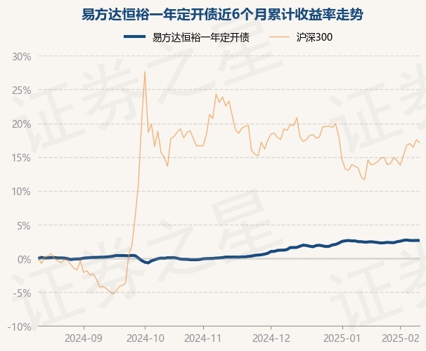 证券之星消息,2月13日,易方达恒裕一年定开债最新单位净值为1.0613元,累计净值为1.2303元,较前一交易日下跌0.01%。历史数据显示该基金近1个月上涨0.25%,近3个月上涨2.45%,近6个月上涨2.65%,近1年上涨6.01%。该基金近6个月的累计收益率走势如下图: