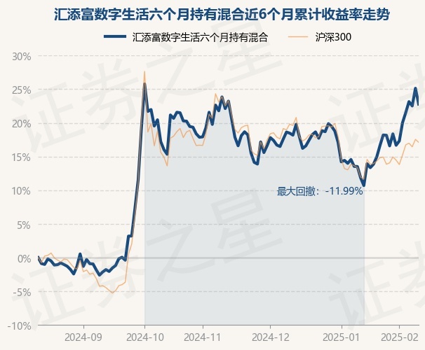 证券之星消息,2月13日,汇添富数字生活六个月持有混合最新单位净值为0.6693元,累计净值为0.6693元,较前一交易日下跌1.88%。历史数据显示该基金近1个月上涨10.92%,近3个月下跌0.36%,近6个月上涨22.78%,近1年上涨25.27%。该基金近6个月的累计收益率走势如下图: