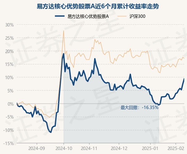 证券之星消息,2月13日,易方达核心优势股票A最新单位净值为0.7078元,累计净值为0.7078元,较前一交易日上涨1.75%。历史数据显示该基金近1个月上涨9.55%,近3个月下跌1.52%,近6个月上涨9.3%,近1年上涨9.82%。该基金近6个月的累计收益率走势如下图: