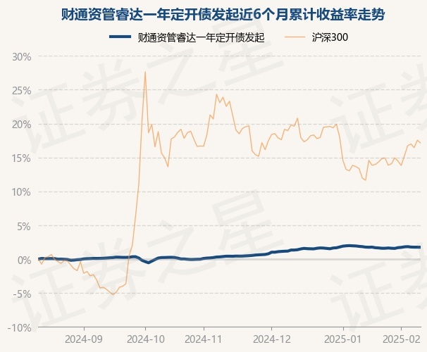 证券之星消息,2月13日,财通资管睿达一年定开债发起最新单位净值为1.0158元,累计净值为1.119元,较前一交易日下跌0.01%。历史数据显示该基金近1个月下跌0.02%,近3个月上涨1.32%,近6个月上涨1.75%,近1年上涨5.32%。该基金近6个月的累计收益率走势如下图: