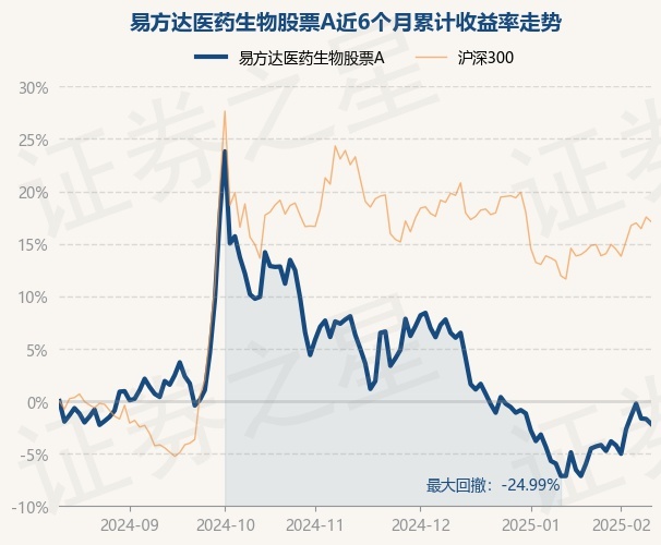 证券之星消息,2月13日,易方达医药生物股票A最新单位净值为0.5872元,累计净值为0.5872元,较前一交易日下跌0.47%。历史数据显示该基金近1个月上涨5.35%,近3个月下跌7.98%,近6个月下跌2.17%,近1年上涨3.42%。该基金近6个月的累计收益率走势如下图: