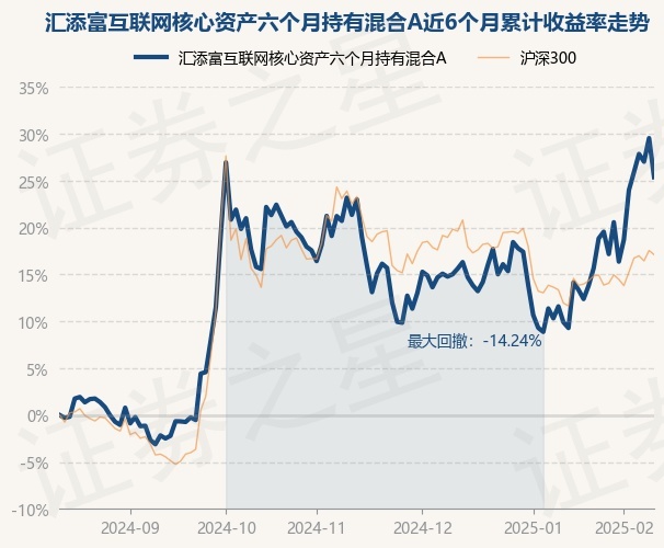 证券之星消息,2月13日,汇添富互联网核心资产六个月持有混合A最新单位净值为0.6695元,累计净值为0.6695元,较前一交易日下跌3.21%。历史数据显示该基金近1个月上涨14.72%,近3个月上涨1.93%,近6个月上涨25.37%,近1年上涨34.74%。该基金近6个月的累计收益率走势如下图: