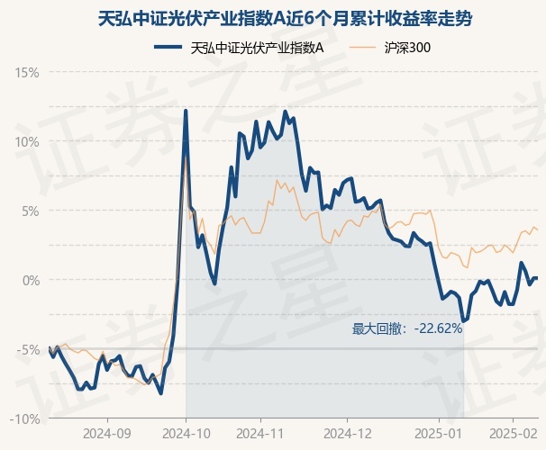 证券之星消息,2月13日,天弘中证光伏产业指数A最新单位净值为0.6289元,累计净值为0.6289元,较前一交易日上涨0.0%。历史数据显示该基金近1个月上涨4.28%,近3个月下跌18.37%,近6个月上涨8.77%,近1年下跌7.66%。该基金近6个月的累计收益率走势如下图: