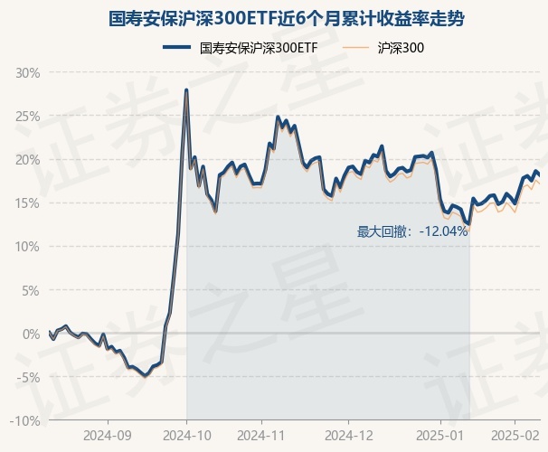 证券之星消息,2月13日,国寿安保沪深300ETF最新单位净值为1.1242元,累计净值为1.1242元,较前一交易日下跌0.37%。历史数据显示该基金近1个月上涨5.02%,近3个月下跌4.56%,近6个月上涨18.14%,近1年上涨19.52%。该基金近6个月的累计收益率走势如下图: