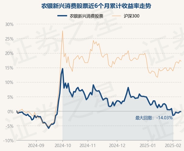 证券之星消息,2月13日,农银新兴消费股票最新单位净值为0.5427元,累计净值为0.5427元,较前一交易日上涨0.0%。历史数据显示该基金近1个月下跌0.5%,近3个月下跌5.94%,近6个月上涨0.67%,近1年下跌5.16%。该基金近6个月的累计收益率走势如下图: