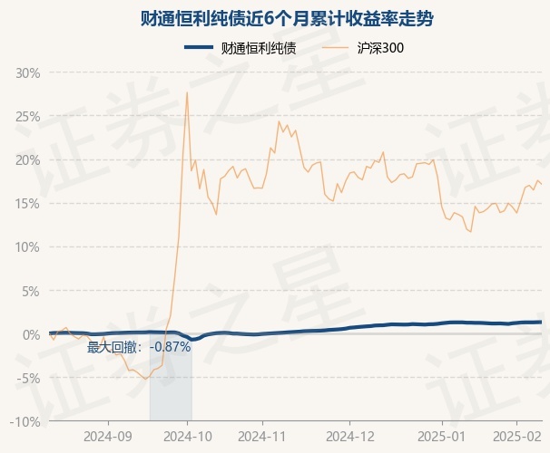证券之星消息,2月13日,财通恒利纯债最新单位净值为1.0594元,累计净值为1.1619元,较前一交易日上涨0.01%。历史数据显示该基金近1个月上涨0.07%,近3个月上涨1.12%,近6个月上涨1.3%,近1年上涨3.98%。该基金近6个月的累计收益率走势如下图: