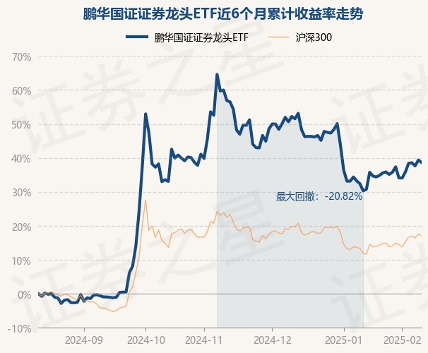 证券之星消息,2月13日,鹏华国证证券龙头ETF最新单位净值为1.1929元,累计净值为1.1929元,较前一交易日下跌0.53%。历史数据显示该基金近1个月上涨6.01%,近3个月下跌11.41%,近6个月上涨38.63%,近1年上涨27.95%。该基金近6个月的累计收益率走势如下图: