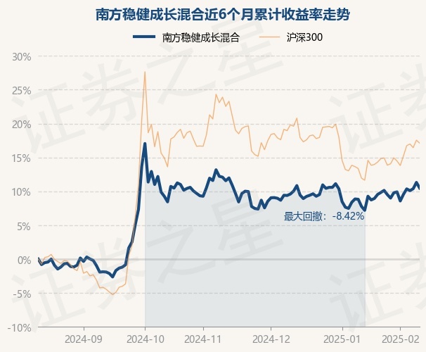证券之星消息,2月13日,南方稳健成长混合最新单位净值为1.7988元,累计净值为3.8138元,较前一交易日下跌0.75%。历史数据显示该基金近1个月上涨3.06%,近3个月下跌1.34%,近6个月上涨10.48%,近1年上涨8.2%。该基金近6个月的累计收益率走势如下图: