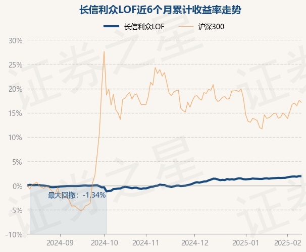证券之星消息,2月13日,长信利众LOF最新单位净值为0.9858元,累计净值为1.3248元,较前一交易日下跌0.04%。历史数据显示该基金近1个月上涨0.53%,近3个月上涨1.79%,近6个月上涨1.89%,近1年上涨4.01%。该基金近6个月的累计收益率走势如下图: