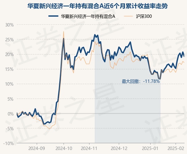 证券之星消息,2月13日,华夏新兴经济一年持有混合A最新单位净值为0.9343元,累计净值为0.9343元,较前一交易日下跌1.16%。历史数据显示该基金近1个月上涨6.85%,近3个月下跌3.92%,近6个月上涨19.28%,近1年上涨29.49%。该基金近6个月的累计收益率走势如下图: