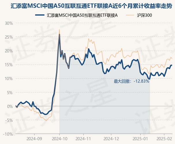 证券之星消息,2月13日,汇添富MSCI中国A50互联互通ETF联接A最新单位净值为0.8695元,累计净值为0.8695元,较前一交易日上涨0.06%。历史数据显示该基金近1个月上涨4.57%,近3个月下跌3.23%,近6个月上涨14.72%,近1年上涨20.23%。该基金近6个月的累计收益率走势如下图: