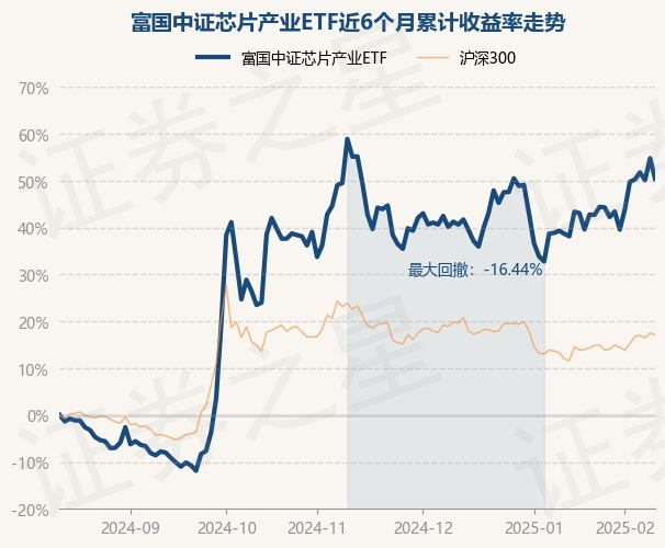 证券之星消息,2月13日,富国中证芯片产业ETF最新单位净值为0.7793元,累计净值为0.7793元,较前一交易日下跌2.83%。历史数据显示该基金近1个月上涨8.87%,近3个月下跌3.08%,近6个月上涨50.39%,近1年上涨58.94%。该基金近6个月的累计收益率走势如下图: