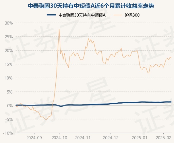 中泰稳固30天持有中短债A为债券型-中短债基金,根据最新一期基金季报显示,该基金资产配置:无股票类资产,债券占净值比94.49%,现金占净值比5.26%。