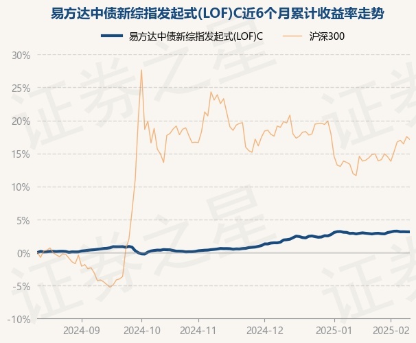 证券之星消息,2月13日,易方达中债新综指发起式(LOF)C最新单位净值为1.6948元,累计净值为1.6948元,较前一交易日下跌0.01%。历史数据显示该基金近1个月上涨0.3%,近3个月上涨2.52%,近6个月上涨3.12%,近1年上涨6.16%。该基金近6个月的累计收益率走势如下图: